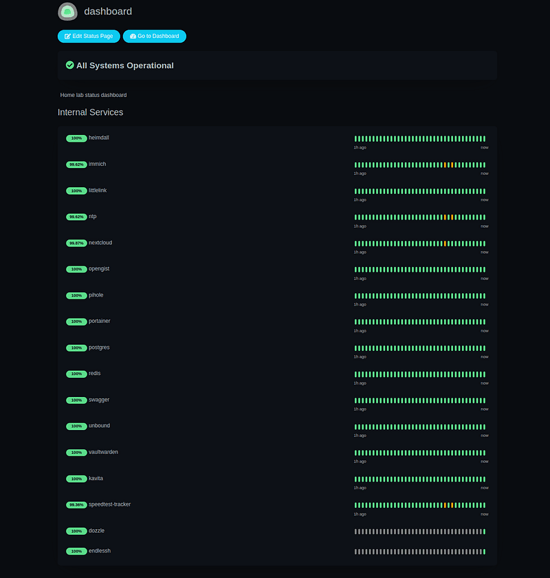 The heartbeat of my homelab is a Raspberry Pi (Heimdall), dutifully serving as a backup server running. Alongside it stands a mini PC (Odin), my trusted central server, orchestrating various services. Another mini PC, Hœnir, proudly takes on the role of my main workstation, where countless lines of code come to life. My laptop, Dellingr, transforms into a mobile workstation for those on-the-go moments, ensuring productivity knows no bounds. As my homelab continues to evolve, there's a promise of more servers on the horizon, each waiting to join the ensemble. The journey has just begun, and the prospect of enhancing my homelab with additional servers and services makes the future brim with possibilities.